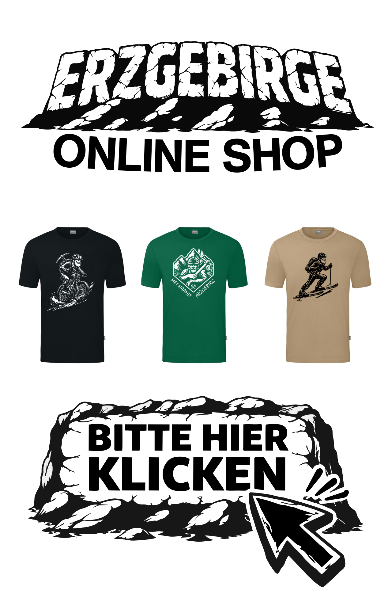 Hochwertige Baumwoll T-Shirts mit dem Schriftzug " Erzgebirge Wandern,Winter,Berge,mehr..." in versch. Farben.